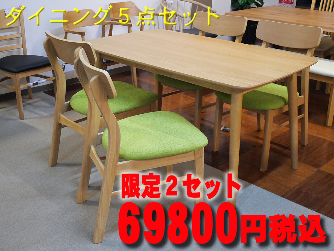 2025.11.03 メーカー協賛!お得なダイニングセットが入荷しました。 ダイニング この記事のタイトルとURLをコピーする 2セット限定ですが、とってもお買得なダイニングセットが入荷しました。 135×80のテーブルと布張の椅子4脚のセットです。 木質感が素敵なナチュラルテイストな食卓セットです。 限定特価69800円 ※配送組立費別 とってもお買得です。 11月1日土曜日からとってもお得な創業祭開催です。 前の記事 11月5日水曜日はお休みさせていただきます。 次の記事