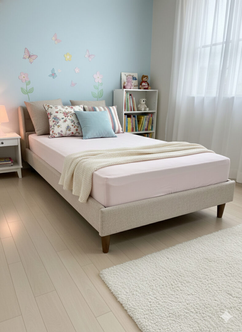 ソファ感覚で使えるファブリックベッド「ラコット」。
