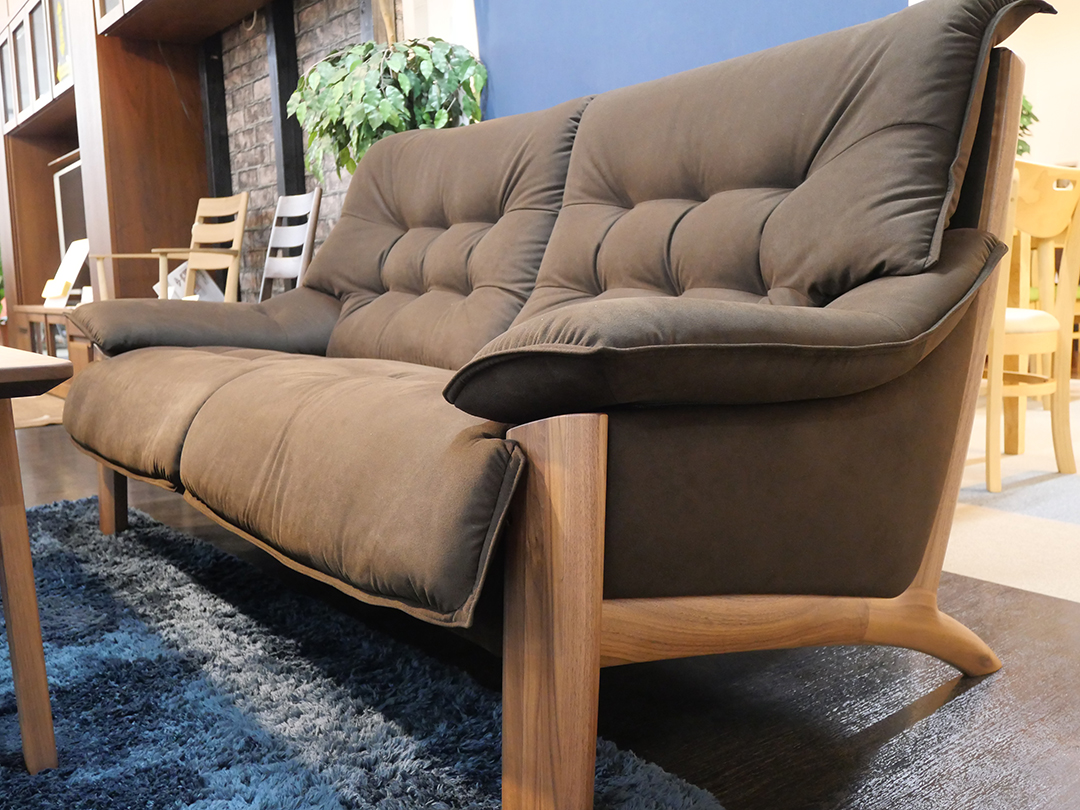 今回は、張地をディナミカ・木部をウォールナットにて展示しました。